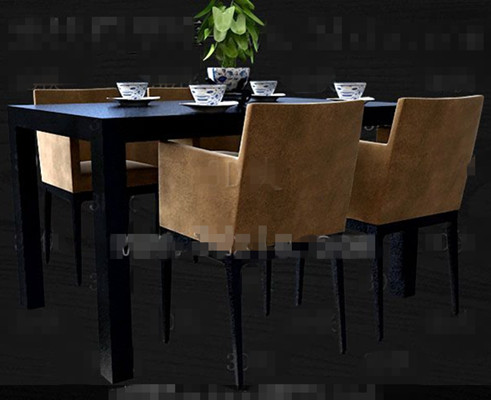 Description:Black and brown-yellow four persons table